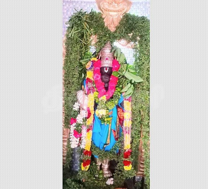 அனுமன் ஜெயந்தி விழாவை முன்னிட்டு மானாமதுரை வீர அழகர் கோயிலில் சிறப்பு அலங்காரத்தில் அருள்பாலித்த உற்சவர் ஸ்ரீ வீர ஆஞ்சனேயர் சுவாமி.