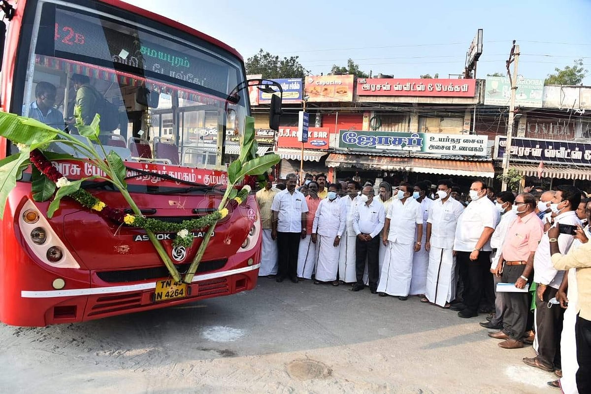 முன்னதாக பேருந்து நிலையத்திற்குள் செல்லும் பேருந்துகளில், அமைச்சர்கள், சட்டமன்ற உறுப்பினர்கள், அதிகாரிகள் பேருந்தில் பயணம் செய்து பேருந்து நிலையத்திற்குள் வந்து இறங்கினர்.