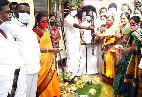 பின்னர் கட்சி நிர்வாகிகள் அனைவருக்கும் தமிழ்புத்தாண்டு வாழ்த்துகளை கூறினார். அதனையடுத்து கட்சி நிர்வாகிகள், பொதுமக்கள் அனைவருக்கும் பொங்கல், கரும்பு, சுண்டல் ஆகியவைகளை வழங்கிப் பேசினார். முன்னதாக அவர் திமுக கட்சி கொடியை ஏற்றி வைத்தார்.