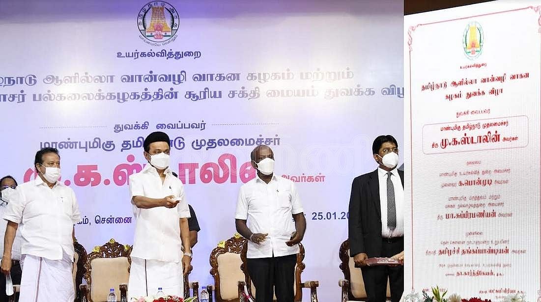 ரூ.10 கோடி மதிப்பீட்டில் புதிதாக தோற்றுவிக்கப்பட்டுள்ள தமிழ்நாடு ஆளில்லா வான்வழி வாகனக் கழகத்தை தமிழக முதல்வர் மு.க.ஸ்டாலின் தொடங்கி வைத்து, மதுரை காமராசர் பல்கலைக்கழகத்தில் ரூ.7.25 கோடி மதிப்பீட்டில் அமைக்கப்பட்டுள்ள சூரிய மின்சக்தி மையத்தை திறந்து வைத்தார்.