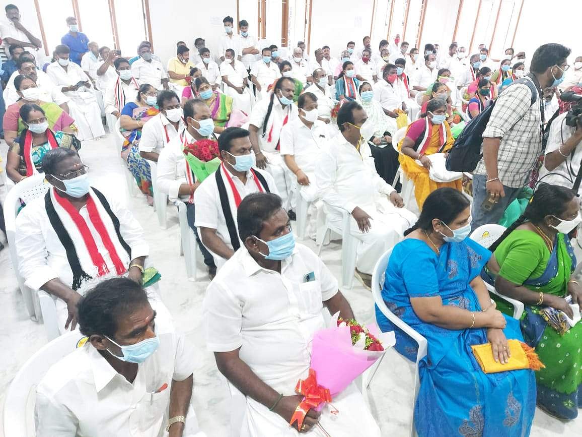 நகர்ப்புற உள்ளாட்சி தேர்தலையொட்டி சேலம் மாவட்ட அதிமுக நிர்வாகிகள் மற்றும் வேட்பாளர்களுடன் எடப்பாடி பழனிசாமி ஆலோசனை மேற்கொண்டு வருகிறார்.