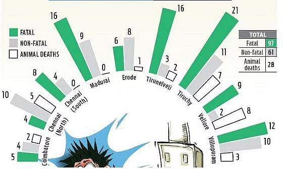 அதாவது ஜனவரி முதல் மார்ச் 31 வரையிலான காலகட்டத்தில் மட்டும் தமிழ்நாடு மின் உற்பத்தி மற்றும் விநியோகக் கழகத்தில் பணிபுரியும் ஊழியர்கள் உள்பட 97 பேர் மின்சாரம் பாய்ந்து உயிரிழந்ததாக அரசு புள்ளி விவரங்களில் தெரியவந்துள்ளது.