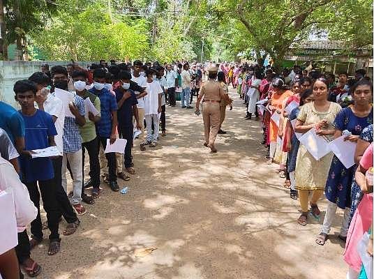 தேர்வு, மதியம் 2 மணிக்கு தொடங்கி மாலை 5:20 மணி வரை நடைபெறுகிறது. அருகில் உள்ள மயிலாடுதுறை மாவட்டத்தை சேர்ந்த மாணவர்களும் தேர்வு எழுத வருகை தந்துள்ளனர்.