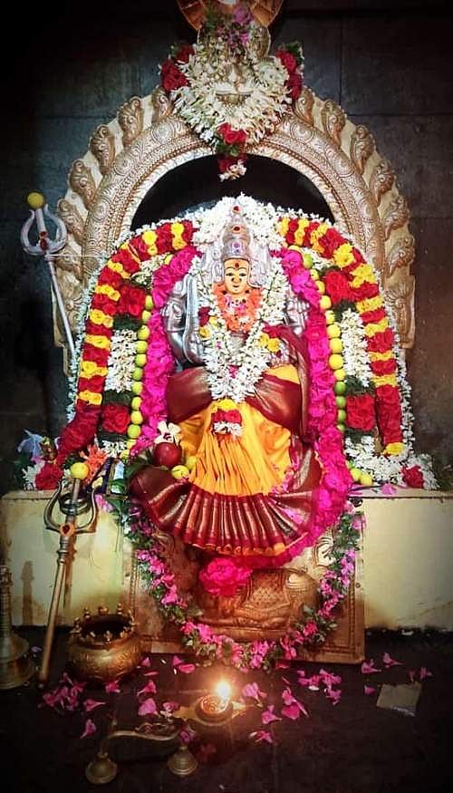 அலங்காரத்தில் பக்தர்களுக்கு அருள்பாலிக்கும் வேளுக்குடி அங்காளப் பரமேஸ்வரி அம்மன்.
