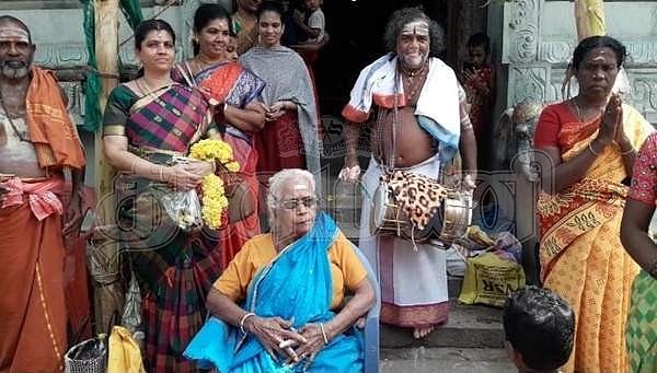 பம்பை அடித்து, அம்பாளை அழைத்த காட்சி.