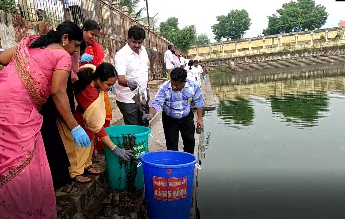 துவக்க விழா நிகழ்ச்சியில் காஞ்சிபுரம் மாநகராட்சி மேயர் மகாலட்சுமி யுவராஜ், துணை மேயர் குமரகுருநாதன், மாநகராட்சி ஆணையர் கண்ணன் ஆகியோர் கலந்து கொண்டு திருக்குளத்தில் மிதந்து கிடந்த கழிவுகள் மற்றும் நடைபாதைகள் இருந்த கழிவுகள் அனைத்தையும் அகற்றும் பணியில் ஈடுபட்டனர்.