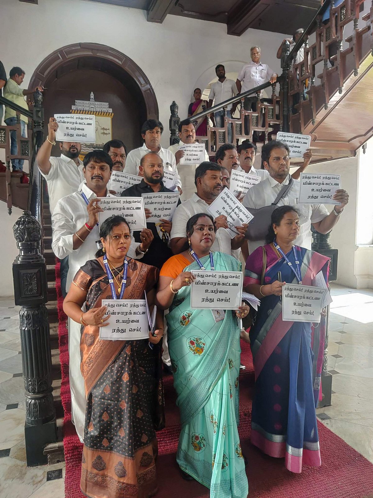 அப்போது மின் கட்டண உயர்வை ரத்து செய்யக்கோரி அதிமுக கவுன்சிலர்கள் கோஷமிட்டனர். பின்னர் மின் கட்டண உயர்வைக் கண்டித்து பதாகைகளுடன் அவர்கள் வெளிநடப்பு செய்தனர்.