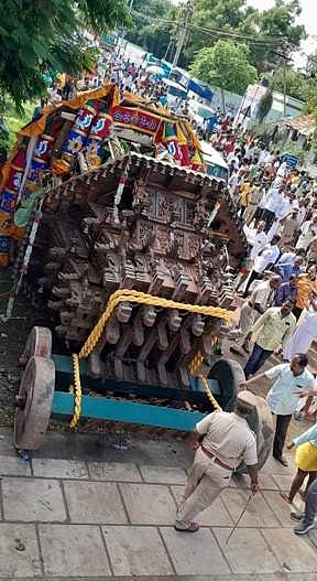 அப்போது எதிர்பாராத விதமாக தேர் சரிந்து முற்றிலுமாக கவிழ்ந்து விபத்துக்குள்ளானது.