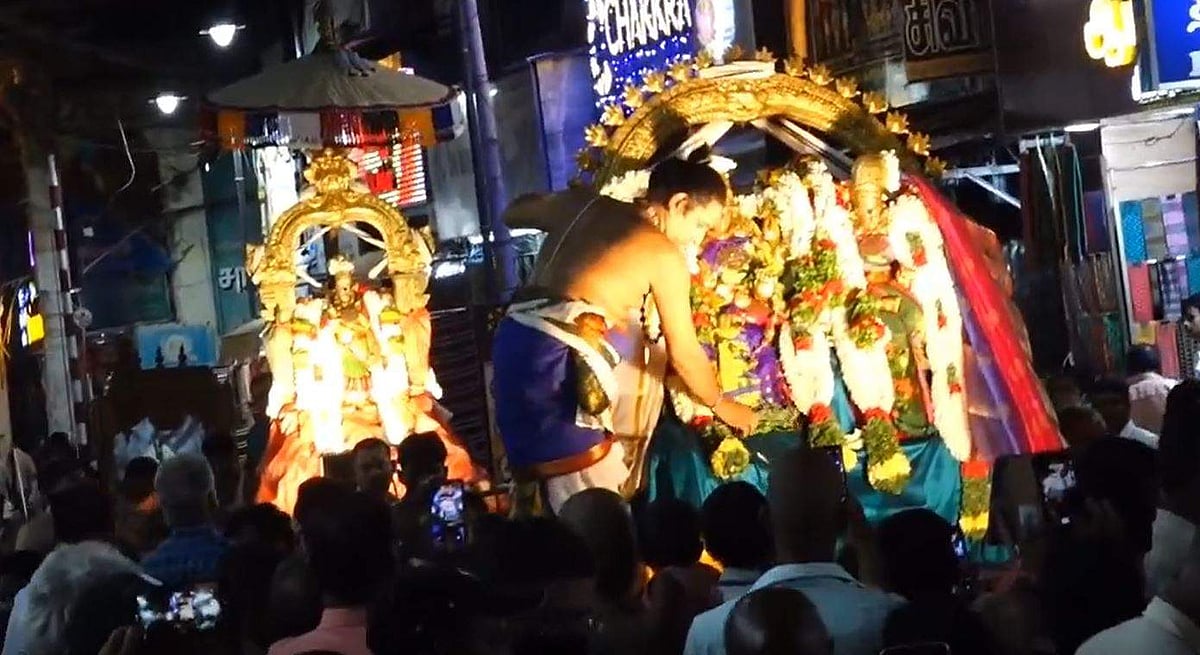 பின்னர் மீனாட்சியம்மனும், சுந்தரேஸ்வரர் சித்திரை வீதிகளில் எழுந்தருளி பக்தர்களுக்கு அருள்பாலித்த பிறகு மீண்டும் கோயிலுக்குச் சென்றனர்.