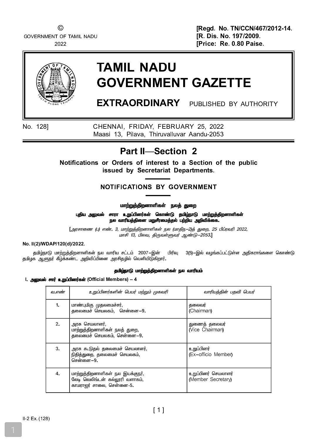 மாற்றுத்திறனாளிகள் நலவாரியம் மறுசீரமைப்பு: தமிழக அரசாணை வெளியீடு