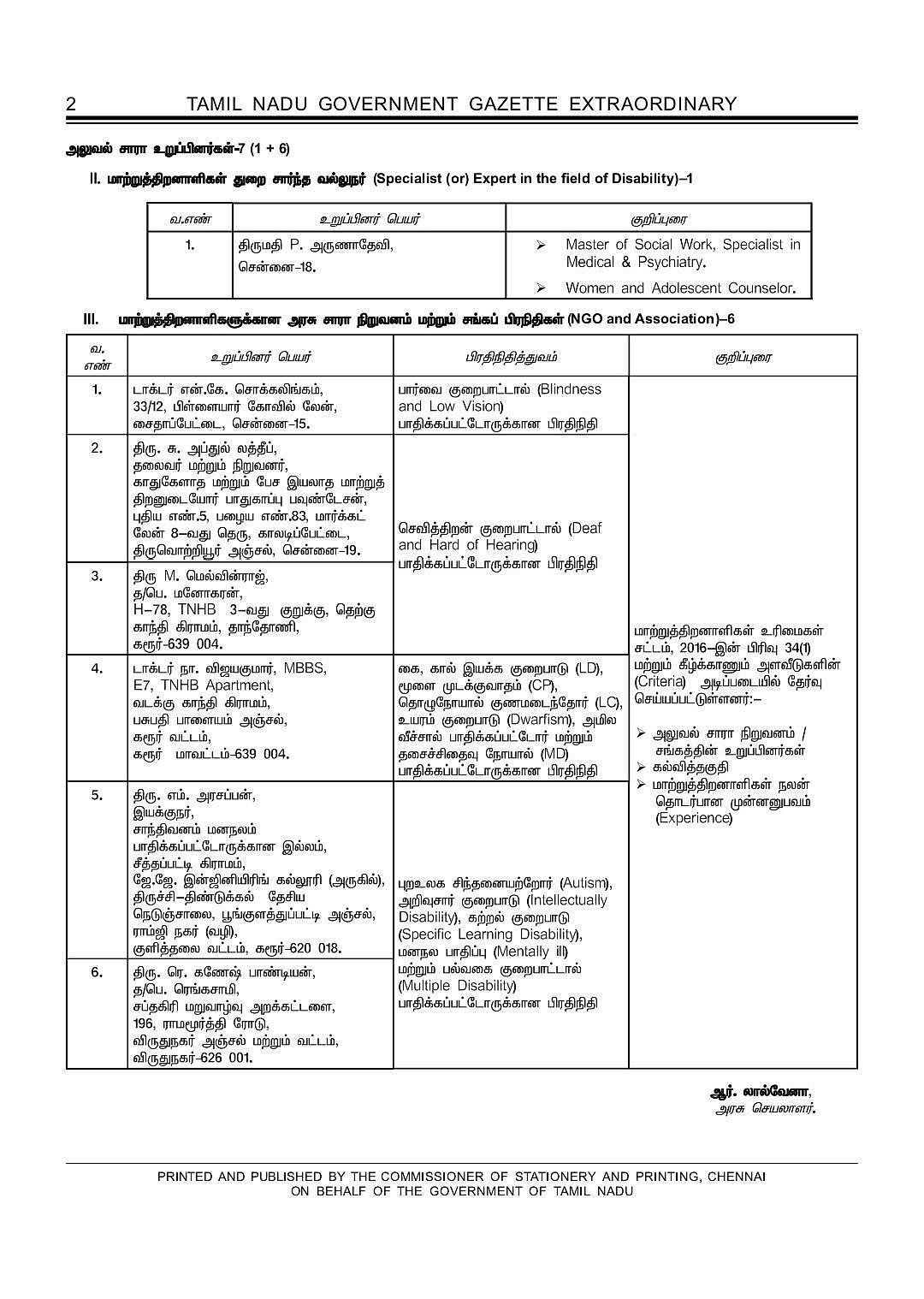 மாற்றுத்திறனாளிகளுக்கான அரசு சாரா நிறுவனம், சங்கப்பிரதிநிதிகளையும் உறுப்பினர்களாக நியமித்து உத்தரவிட்டுள்ளது.
