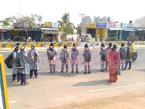 நீண்ட நேரம் காத்திருந்தும் பேருந்தில் ஏறமுடியாமல் தவிக்கும் பள்ளி மாணவ, மாணவிகள்