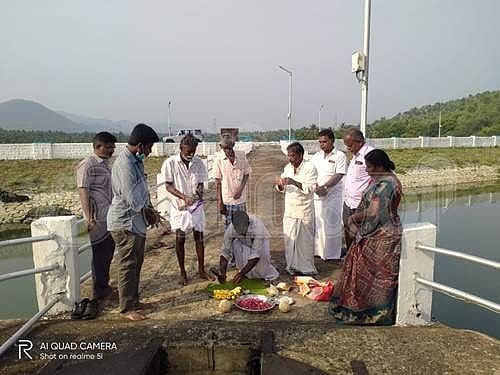 அணையில் இருந்து தண்ணீர் திறக்க நடைபெற்ற பூஜை.