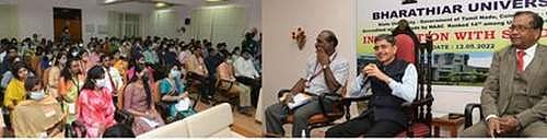 பாரதியாா் பல்கலைக்கழகத்தின் 37ஆவது பட்டமளிப்பு விழா வெள்ளிக்கிழமை நடைபெற உள்ளது. இதில் பங்கேற்பதற்காக வியாழக்கிழமை கோவை வந்த ஆளுநா் ஆா்.என்.ரவி, பல்கலைக்கழக மாணவா்கள், உறுப்பு, இணைப்புக் கல்லூரி முதல்வா்களுடன் கலந்துரையாடினாா்.