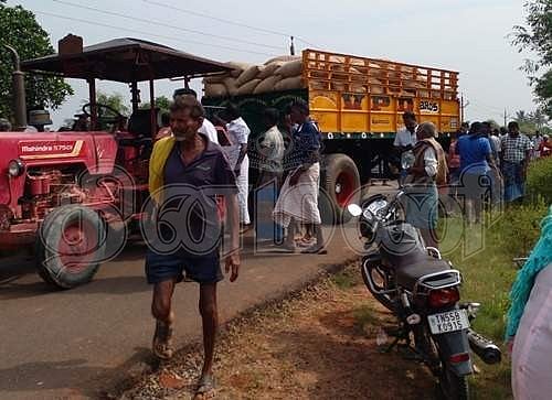 கல்லூரி மாணவி சென்ற மோட்டார் சைக்கிள் மீது மோதிய சோளம் ஏற்றி வந்த டிராக்டர்