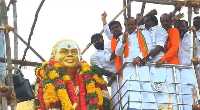 அமமுக பொதுச்செயலாளர் டிடிவி தினகரன் மற்றும் வி.கே.சசிகலா ஆகியோரும் தனித்தனியே பிரச்சார வேனில் வந்து சிலைக்கு மாலையணிவித்து மரியாதை செலுத்தினர்.