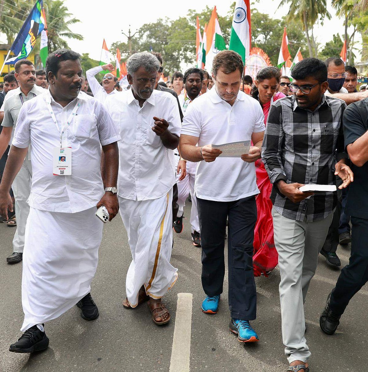 ராகுல் காந்தி தலைமையில் காங்கிரஸ் கட்சி சார்பில் நடைபெறும் இந்திய ஒற்றுமை நடைப்பயணத்தின் இரண்டாவது நாள், கன்னியாகுமரி மாவட்டம் அகத்தீஸ்வரம் பகுதியிலிருந்து தொடங்கியது.