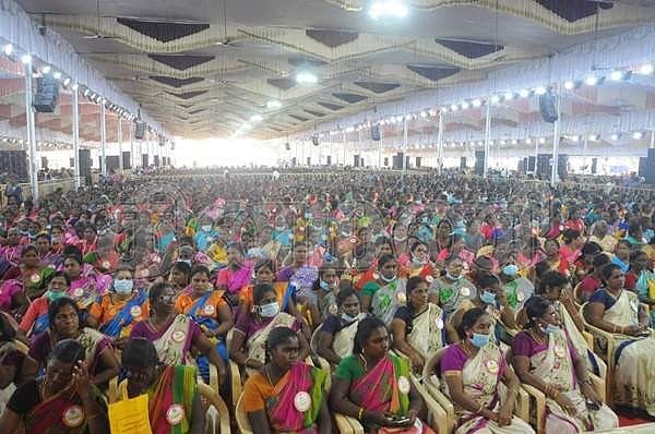 திருச்சியில் வியாழக்கிழமை அண்ணா விளையாட்டரங்கில் நடைபெற்ற அரசு நலத்திட்ட உதவிகள் வழங்கும் விழாவில் பங்கேற்ற மகளிர் சுய உதவிக் குழுக்களைச் சேர்ந்த மகளிர்.