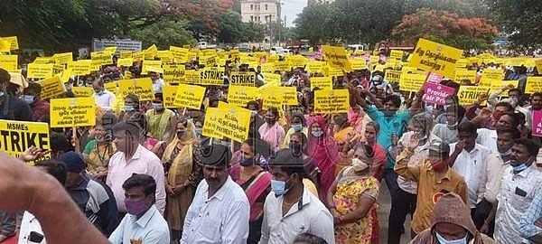 ஒசூரில் 3 ஆயிரம் சிறு குறுந்தொழில் நிறுவனங்கள் கதவடைப்பு, ஆர்ப்பாட்டம்