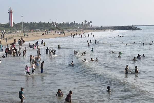 காவேரி ஆறு கடலோடு சங்கமிக்கும் பூம்புகாரில் புனித நீராடும் பக்தர்கள்