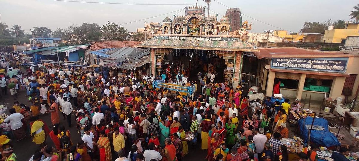 பின்னர் அம்மனுக்கு காப்புக் கட்டுதல் நடைபெற்றது. இந்த விழாவில் பங்கேற்க தமிழகம் முழுவதிலுமிருந்து லட்சக்கணக்கான பக்தர்கள் சமயபுரத்தில் குவிந்துள்ளனர்.