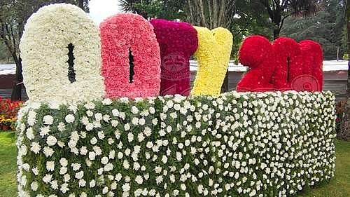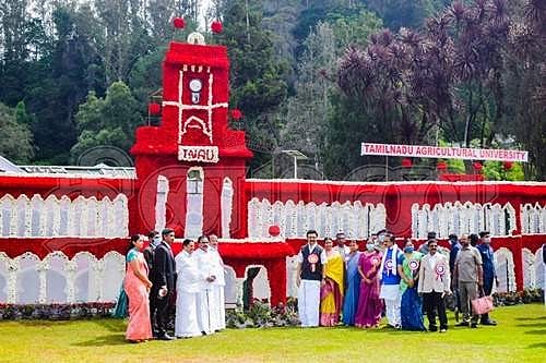 மலர் கண்காட்சியில் 1 லட்சம் காரனேஷன் மலா்கைளைக் கொண்டு வடிவமைக்கப்பட்டுள்ள பிரம்மாண்ட தமிழக வேளாண் பல்கலைக்கழக முகப்பு.