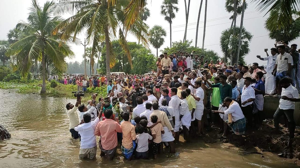 சீர்காழி அடுத்த கொள்ளிடம் வட்டாரத்திற்கு உட்பட்ட நல்லூர், அகர வட்டாரம், வேட்டங்குடி ஆகிய பகுதிகளில் மழை நீரில் மூழ்கியுள்ள விவசாய நிலங்களை பார்வையிட்டார். தண்ணீரில் மூழ்கியுள்ள பயிர்களை பிடுங்கி விவசாயிகள் எடப்பாடி பழனிசாமியிடம் காண்பித்து பாதிப்பு குறித்து கூறினர்.