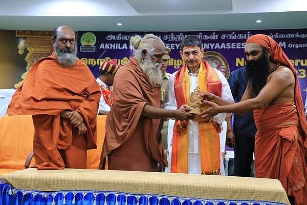 கோவை பேரூர் ஆதீனத்தின் சார்பில் ஆளுநர் ஆர்.என்.ரவிக்கு நினைவுப் பரிசு வழங்கப்பட்டது.