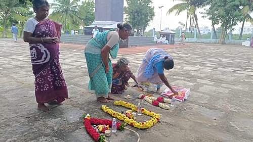 சுனாமி ஏற்பட்டு 18 ஆண்டுகள் கடந்து போனாலும், உயிரிழந்தவர்களின் உறவினர்கள் பல்வேறு மாவட்டத்தில் இருந்தும் வெளிமாநிலங்களில் வந்து வேளாங்கண்ணி நினைவு ஸ்தூபியில் கண்ணீர் மல்க மெழுகுவர்த்தி ஏந்தியும், மாலைகள், மலர் வலையம், அவர்களுக்கு பிடித்தமான உணவு வகைகளை வைத்து அஞ்சலி செலுத்தினர்.