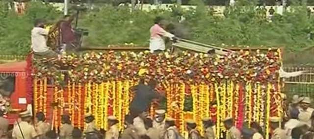 மறைந்த தேமுதிக தலைவா் விஜயகாந்தின் உடல் பொதுமக்கள் அஞ்சலி செலுத்துவதற்காக தீவுத்திடலில் வைக்கப்பட்டது. ஏராளமான மக்கள் அலைகடல் என திரண்டு வந்து விஜயகாந்த்துக்கு அஞ்சலி செலுத்தினர். இதையடுத்து, இன்று பகல் 2.30 மணிக்கு தீவுத்திடலில் இருந்து விஜயகாந்த் இறுதி ஊர்வலம் புறப்பட்டது.