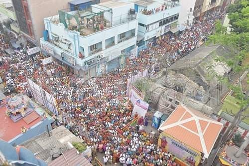 பின்னர், செங்குந்தர் பள்ளி மைதானத்தில் பக்தர்களுக்கு அன்னதானம் வழங்கப்பட்டது.