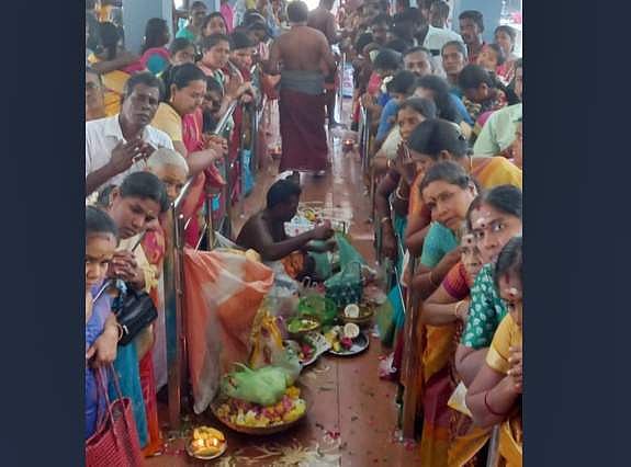 யமுனாம்பாளை வரிசையில் நின்று வழிபடும் பக்தர்கள்.