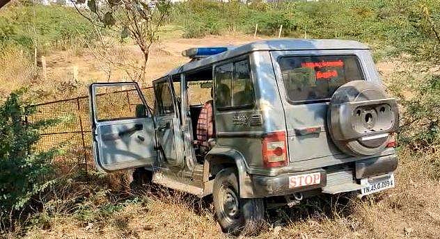 இவர்கள் இருவரையும் வாகனத்தில் அழைத்துச் சென்றபோது உறையூர் குழுமாயி அம்மன் கோயில் அருகே தப்பிக்க முயற்சித்துள்ளனர். இவர்களை தடுக்க முயன்ற காவலர் சிற்றரசுவை அரிவாளால் தாக்கியுள்ளனர்.
