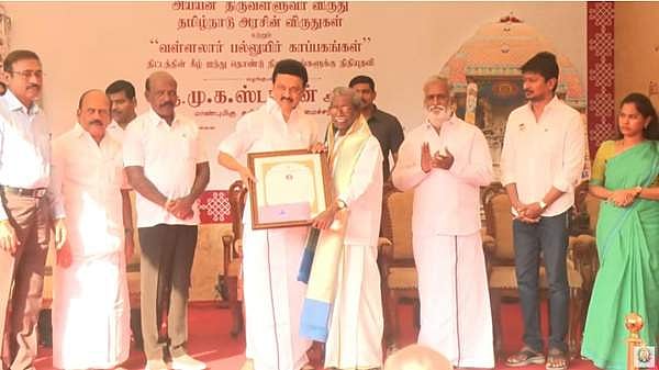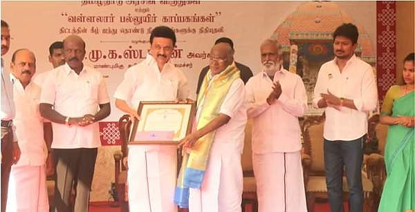 2023 ஆம் ஆண்டிற்கான திருவள்ளுர் விருதை இரணியன் நா.கு.பொன்னுசாமிக்கு வழங்கி பாராட்டினார்.