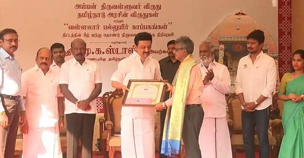 இதனைத்தொடர்ந்து திருவள்ளுவர் விருது, தமிழக அரசின் விருதுகளை முதல்வர் மு.க.ஸ்டாலின் வழங்கினார்.
