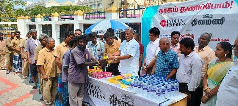 தினமணி சார்பில் நடத்தப்பட்ட தாகம் தணிப்போம் நிகழ்ச்சியில் சேலம் மாநகராட்சி தூய்மைப் பணியாளர்களுக்கு கையுறைகள், குளிர்பானங்கள் வழங்கப்பட்டன.