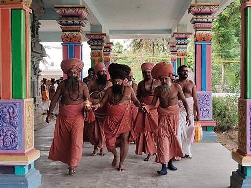 தருமபுரம் ஆதீனகர்த்தர் தங்க பாத குறடுடன், வெள்ளி நாற்காலி பல்லக்கில் சென்று ஆதீனங்களின் குருமூா்த்தங்களுக்கு  சென்று வழிபாடு நடத்தினார்.