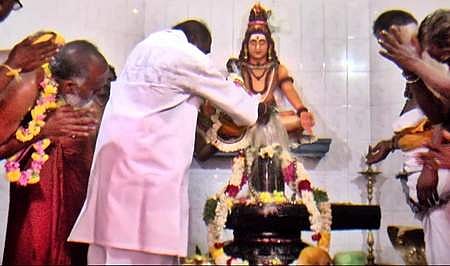 கோயில் கோபுரத்திற்கு சிவாச்சாரியார்கள் பூஜைகளுடன் புனித நீர் ஊற்றி நன்னீராட்டு செய்தனர். தொடர்ந்து மூலவருக்கு முதல்வர் ரங்கசாமி புனித நீர் ஊற்றி, தீபாராதனை காட்டி சிவபெருமானுக்கு பூஜை செய்தார்.