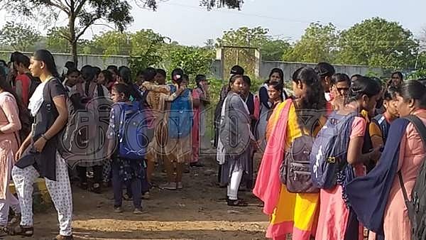 வகுப்புகளை புறக்கணித்து கல்லூரிக்கு வெளியே வந்த மாணவர்-மாணவிகள் முறையான சாலை வசதி செய்துதரக் கோரி முழக்கங்கள் எழுப்பினர். அசம்பாவிதங்களை தடுக்கும் வகையில் போலீசார் பாதுகாப்பு பணியில் ஈடுபட்டனர்.