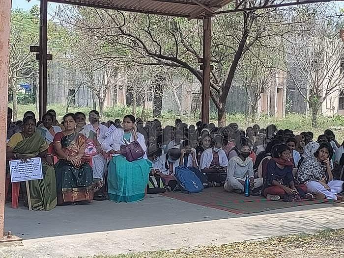 ஊதியம் வழங்கப்படாததை கண்டித்து சிதம்பரம் மருத்துவக்கல்லூரி, மருத்துவமனை ஊழியர்கள் ஆர்ப்பாட்டம்