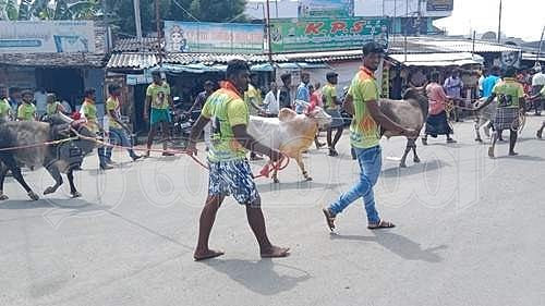 நாமக்கல் அருகே ஜல்லிக்கட்டுக்கு அனுமதி கோரி காளைகளுடன் போராட்டம்!