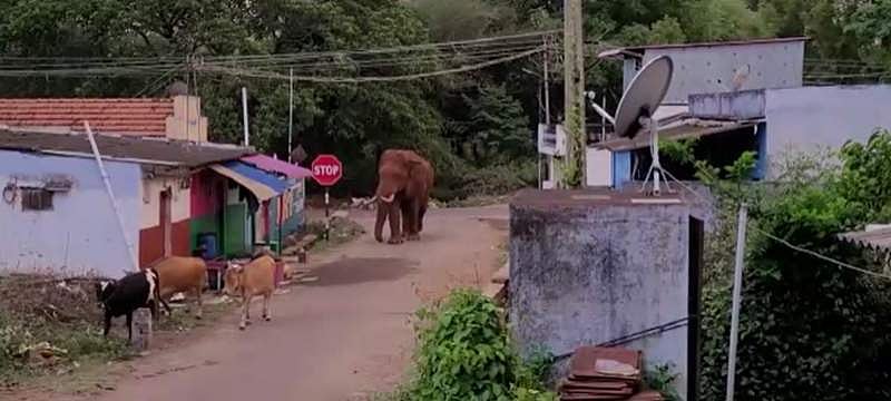 ஊருக்கு மத்தியில் உள்ள இந்த சாலையில் தினமும் காலை, மாலை வேளைகளில் உலா வரும் காட்டு யானைகள் நேற்று சற்று மாறுபட்டு கால்நடைகளுடன் ஹாயாக வாக்கிங் வந்தது. சமயபுரம் பகுதியில் பசு மாடுகளை சிலர் வளர்த்து வரும் நிலையில் அந்த மாடுகள் வனத்தை ஒட்டிய பகுதிகளில் மேய்ச்சலுக்கு சென்று விட்டு திரும்பி ஊருக்குள் வந்த போது அந்த பசு மாடுகளை பின்தொடர்ந்து காட்டு யானை பாகுபலி மட்டுமல்லாமல் மற்ற யானைகளும் வாக்கிங் வருவது போல் பசு மாடுகளுக்கு எந்த அச்சுறுத்தலும் இன்றி ஒய்யாரமாக நடந்து வந்ததை அந்த பகுதி மக்கள் ஆச்சரியமாகவும், சற்று அச்சத்துடன் பார்த்தனர்.
