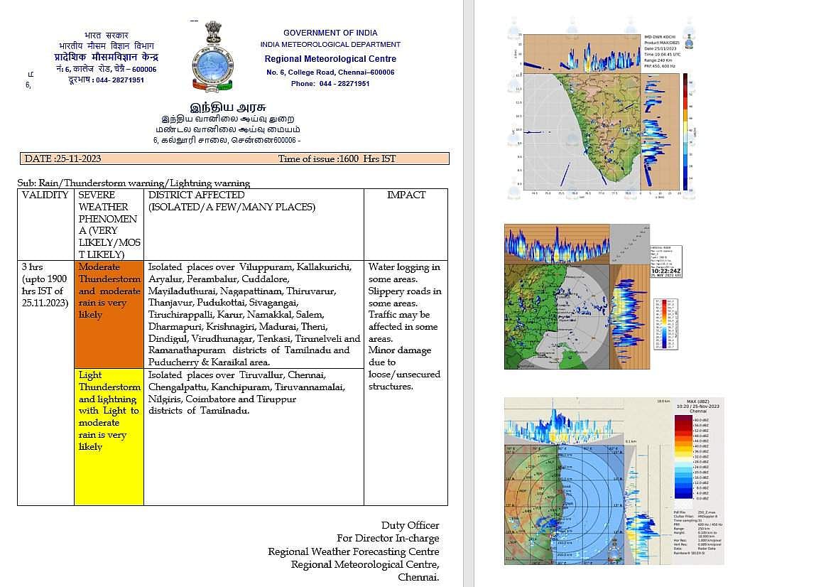 சென்னை, செங்கல்பட்டு, திருவண்ணாமலை, திருவள்ளூர், காஞ்சிபுரம், நீலகிரி, கோவை, திருப்பூர் ஆகிய மாவட்டங்களில் இடி, மின்னலுடன் கூடிய லேசான முதல் மிதமான மழை பெய்ய வாய்ப்புள்ளதாகவும் தெரிவிக்கப்பட்டுள்ளது.