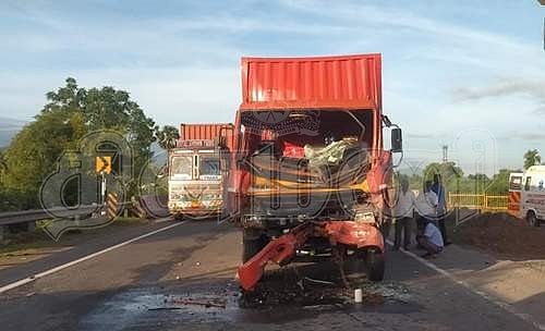 முன்பகுதி முழுவதும் சேதமடைந்த பார்சல் லாரி