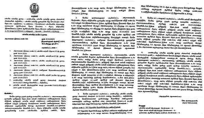ஆசிரியர் பணியில் சேருவதற்கான வயதுவரம்பு உயர்த்தப்பட்டதற்கான அரசாணை வெளியிடப்பட்டுள்ளது தமிழ்நாடு அரசு.
