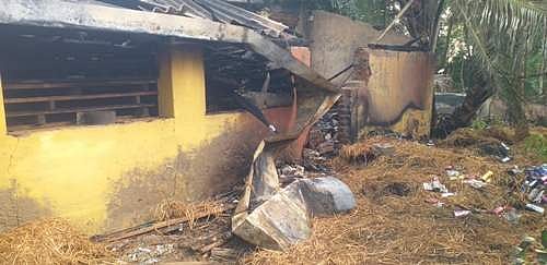 வலங்கைமானில் பட்டாசு விற்பனை செய்யும் கடையின் பின்புறம் பட்டாசுகள் வைக்கப்பட்டிருந்த இடம்.