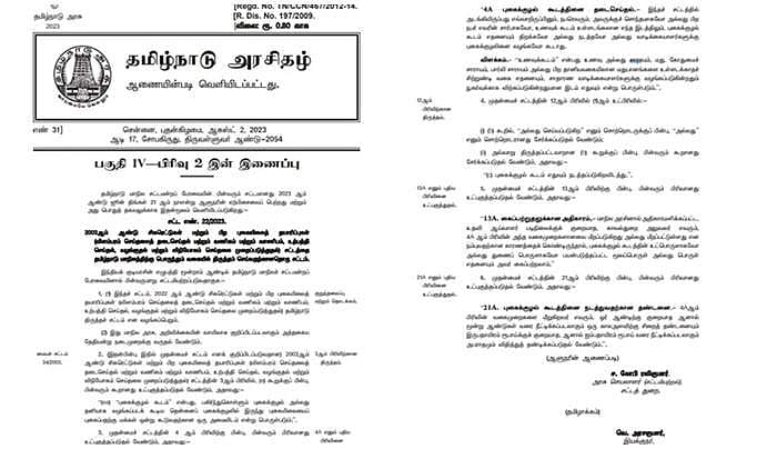 அதன்படி, தமிழகத்தில் உணவுக்கூடங்கள் உள்ளிட்ட எந்த இடத்திலும் புகைக்குழல் அறை திறக்க தடை விதித்து தமிழ்நாடு அரசு சட்டம் இயற்றிய நிலையில், தற்போது அரசிதழில் வெளியிடப்பட்டுள்ளது.