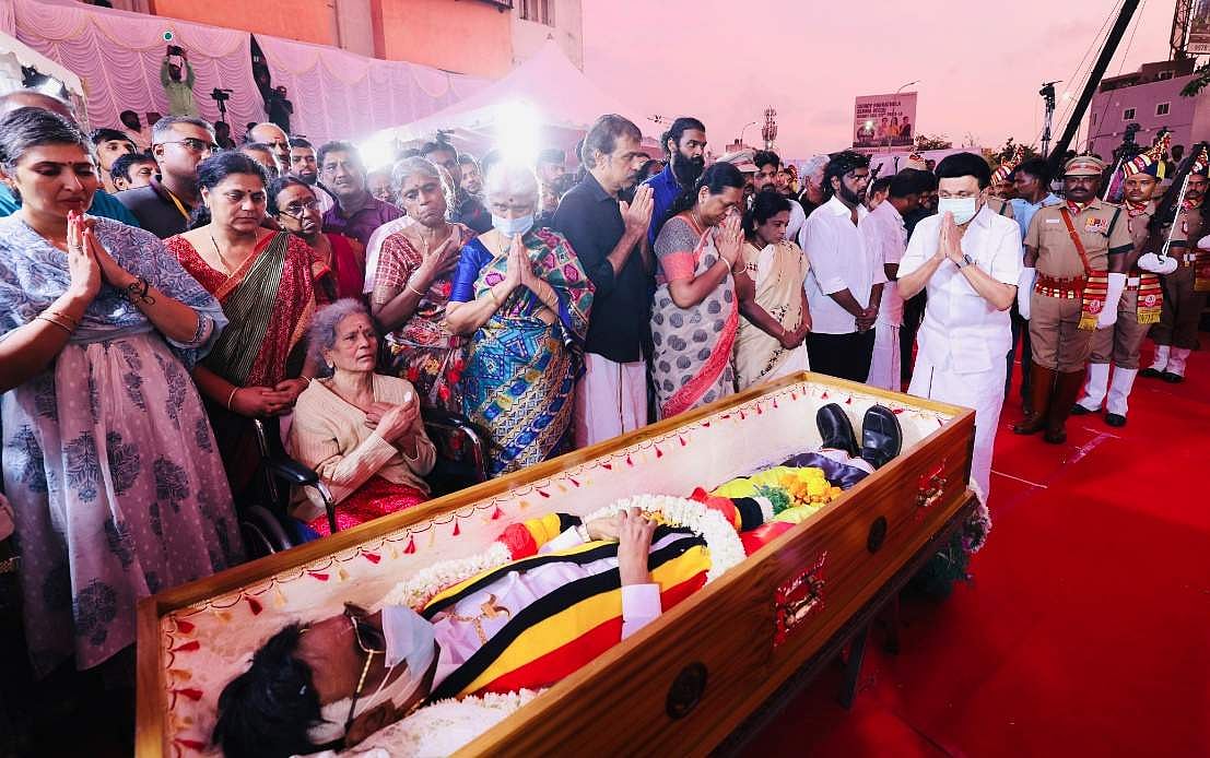 இறுதி ஊர்வலத்தில் மறைந்த தேமுதிக தலைவர் விஜயகாந்திற்கு மக்கள், தொண்டர்கள், ரசிகர்கள் உள்ளிட்டோர் பிரியா விடை கொடுத்தனர். விஜயகாந்தின் இறுதி ஊர்வலம் சென்னை எழும்பூர், வேப்பேரி வழியாக கோயம்பேடு வந்தடைந்தது. மக்கள் வெள்ளத்துக்கு மத்தியில் விஜயகாந்தின் இறுதி ஊர்வலம் நடைபெற்றது. தொடர்ந்து, கோயம்பேடு தேமுதிக அலுவலக வளாகத்தில் நடைபெற்ற விஜயகாந்தின் இறுதிச்சடங்கில் முதல்வர் ஸ்டாலின், அமைச்சர்கள் உள்ளிட்டோர் பங்கேற்று இறுதி அஞ்சலி செலுத்தினர்.