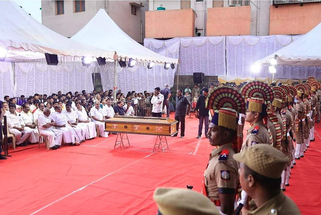 மறைந்த விஜயகாந்தின் உடல் அரசு மரியாதையுடன் கோயம்பேடு தேமுதிக அலுவலக வளாகத்தில் நல்லடக்கம் செய்யப்பட்டது.