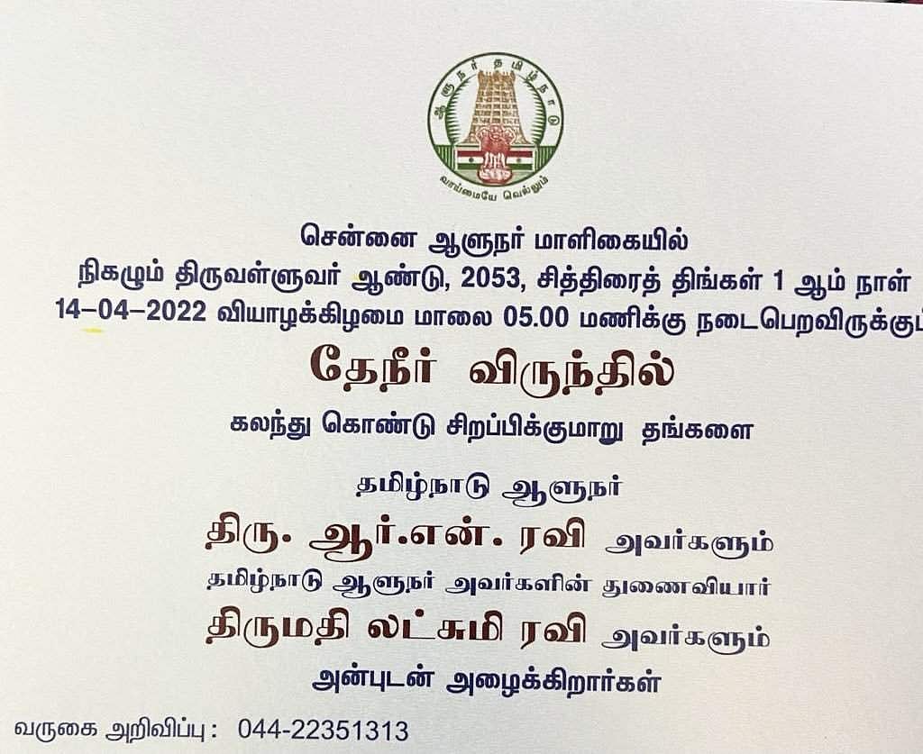 கடந்தாண்டு அச்சடிக்கப்பட்ட அழைப்பிதழில் தமிழக அரசின் இலச்சினையும், தமிழ்நாடு ஆளுநர் எனவும் அச்சடிக்கப்பட்டிருந்ததும் குறிப்பிடத்தக்கது.